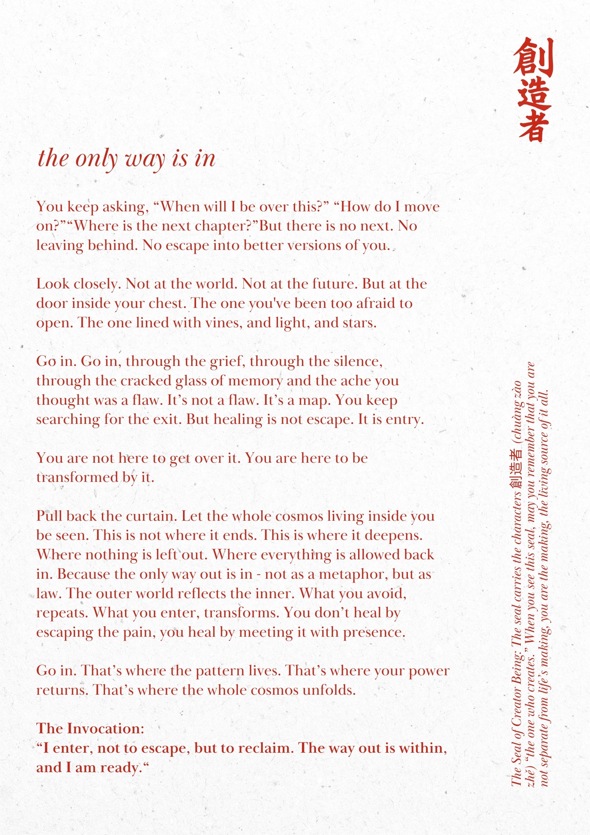 - Includes: Description card and Creator Being seal