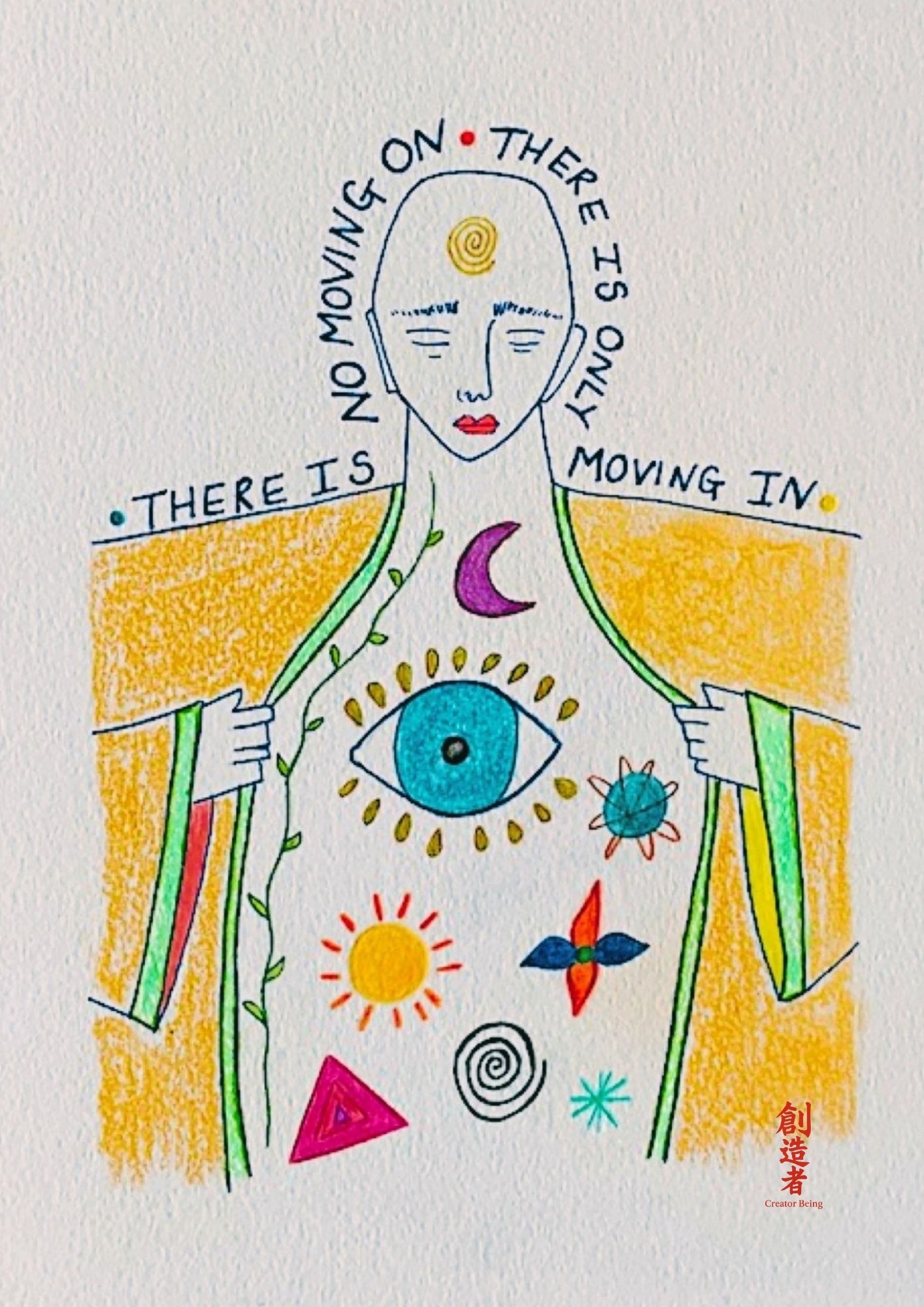 This is the original, hand-drawn artwork featured in the Creator Being book. Created using coloured pencil and fine-line pen on heavyweight 300 gsm paper, each piece is unique and signed by the artist.